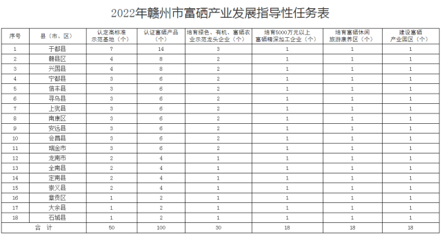 2022年贛州市富硒產(chǎn)業(yè)發(fā)展指導性任務表