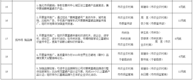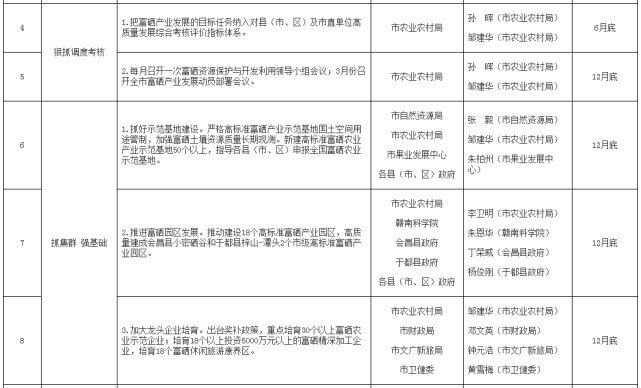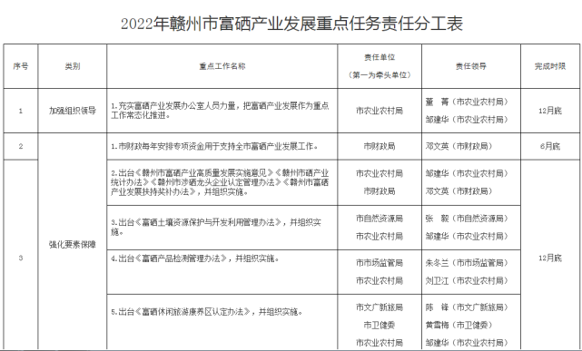 2022年贛州市富硒產(chǎn)業(yè)發(fā)展重點任務責任分工表